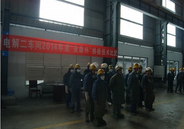青海物產(chǎn)工業(yè)投資有限公司全面啟動"安康杯"競賽活動。2014年4月15日上午電解二車間舉行了"安康杯"換極技術(shù)比武大賽。公司副總經(jīng)理張允忠,副總經(jīng)理、工會主席張秉瑜,總經(jīng)理助理秦建峰出席了開幕式。