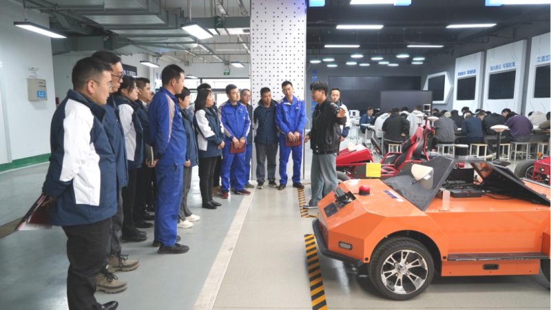 在參觀汽車專業(yè)實訓(xùn)中心時,交通運輸學(xué)院汽車系智慧互聯(lián)專業(yè)老師為支部黨員進行了精彩的現(xiàn)場授課。大家積極請教,互動交流,了解了智慧互聯(lián)交流與共享的新型模式,對生活和工作帶來便利和智能化體驗等內(nèi)容。在場認真聆聽的“物產(chǎn)工匠”石學(xué)林對近期將與高校老師組隊參加“西部陸海新通道建設(shè)全國引領(lǐng)性勞動和技能競賽”,有了新的啟發(fā)。下一步,校企雙方將會對“優(yōu)服務(wù)、壯產(chǎn)業(yè)”技能競賽項目進行深入的研究和探討,做到交流“不斷線”,學(xué)習“不停步”。