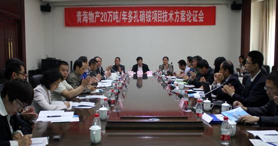 青海物產(chǎn)工業(yè)投資有限公司20萬噸/年多孔硝銨項目技術(shù)方案論證會于2013年5月17日-19日在青海西寧召開,省物產(chǎn)集團總公司總經(jīng)理王玉輝、副總經(jīng)理耿保平、北川工業(yè)園管委會副主任薛萬革、建行西寧支行副行長王硯宏蒞臨會議指導,會議由物產(chǎn)工投常務(wù)副總經(jīng)理常海寧和專家委員會主任分別主持。煙臺萬華高級工程師王全文、山西天脊高級工程師劉金亮、湖北鐘祥凱龍高級工程師楊國富、華陸工程科技有限公司教授級高工劉艷軍、陜西興化工程師馮衛(wèi)、物產(chǎn)民爆總經(jīng)理袁海玲、物產(chǎn)工投高級工程師薛玉貴、華陸工程科技有限公司副總經(jīng)理齊吟、賽鼎工程有限公司商務(wù)部副主任劉軍彪及相關(guān)主設(shè)人員、項目建設(shè)單位代表等共36人參加了會議。專家委員會推選楊國富擔任主任委員、袁海玲擔任副主任委員。